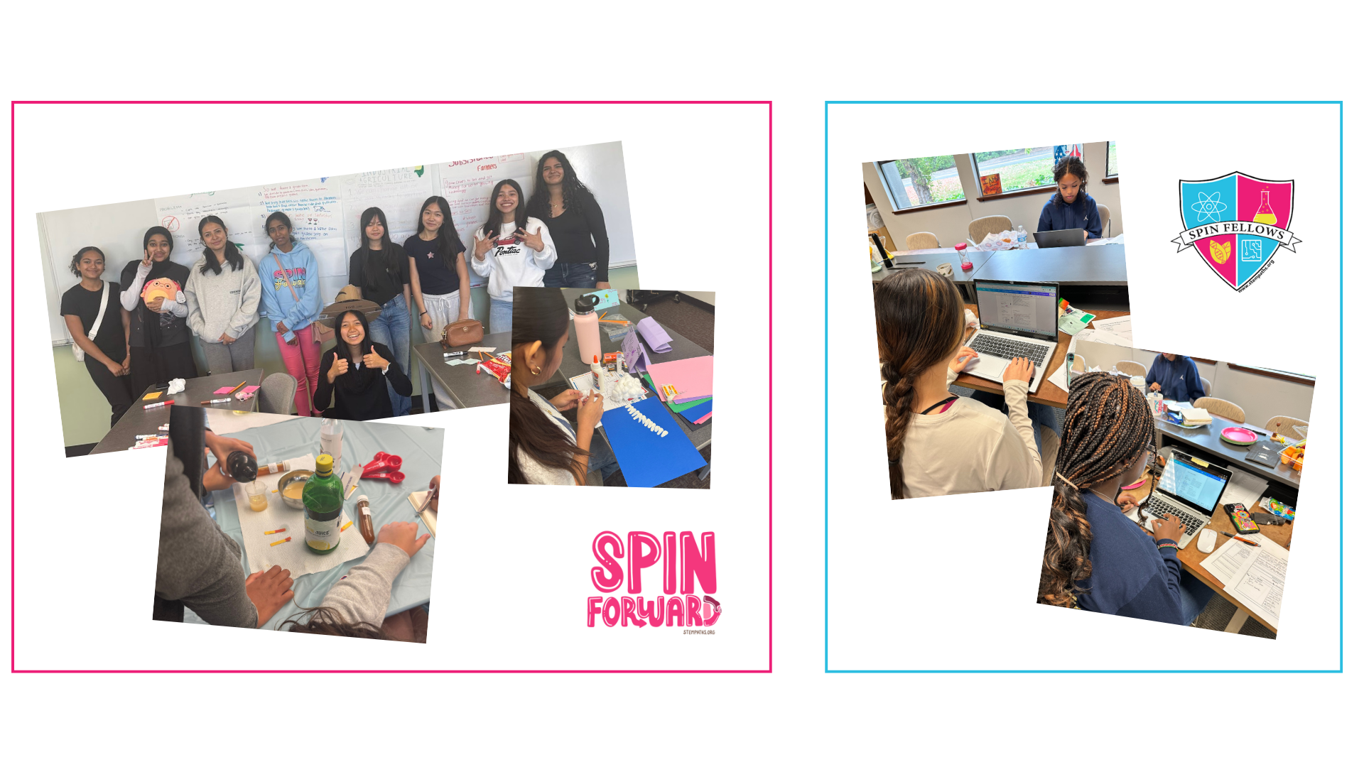 Generally, I would say to not be afraid. Be brave and courageous; take advantage of the opportunities and resources that SPIN has to offer! Don’t be afraid to ask questions or try new things because SPIN is a unique and safe space where learning and trying new things are encouraged and fostered. If you want to present something, then present it. If you want to try a new technology or method, then ask your cohort leads. If you want to learn more about someone’s job, then ask them. SPIN is different from your school; SPIN is a community where all your peers are interested in STEM just like you and support for one another is emphasized.